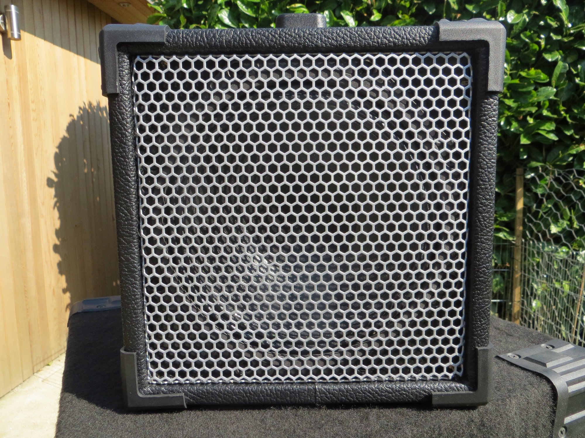 This speaker is very easy to build, inexpensive, one of the lightest speakers on the market for bass guitar and perfect for practice and small boutique gigs. We finished ours in a black textured classic vinyl with plastic corner pieces and hexagonal metal grilles front and back for toughness.