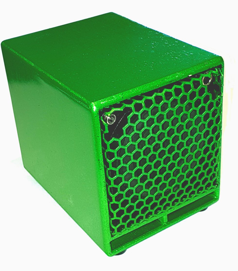 This bass guitar speaker will surprise you with it’s sound and high quality driver. It is only 15 watts with the built in Class D amplifier, and can easily be heard for acoustic jams and at low volume practices indoors. The design is capable of controlling speaker movements down to a low B on a 5 string although it is currently optimised for 4 string basses.